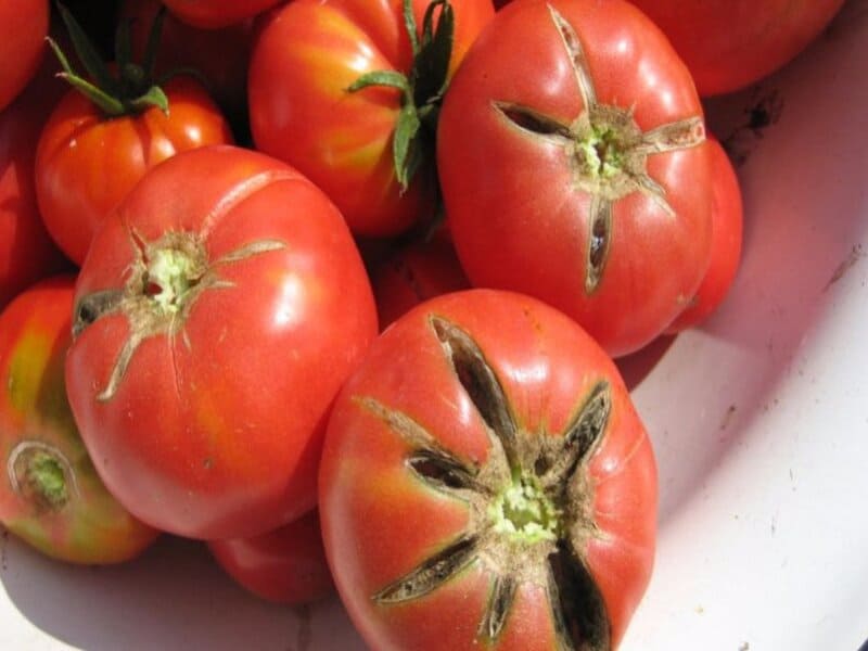 Trhliny v rajčatech se objevují v důsledku nesprávného zavlažování a přebytečných hnojiv na bázi dusíku. Nejčastěji k tomu dochází v důsledku nadměrného a nepravidelného zavlažování.