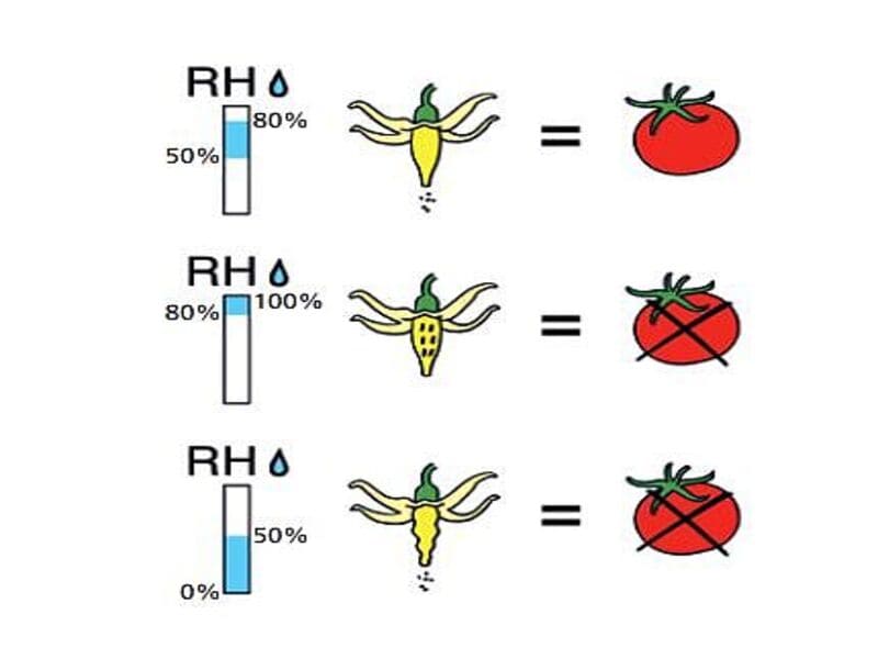 - Úroveň RH nižší než 50 % má za následek špatnou násadu plodů, čmeláci stále pokračují ve sběru pylu, ale plody se přestávají vyvíjet.