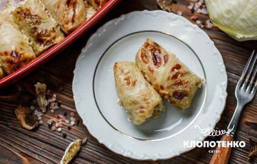 Plněné zelí závitky bez masa. Recept s hříbky