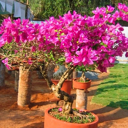 Bougainvillea je barevný „penízkový“ keř z Jižní Ameriky, oblíbený v Asii. Drobné květy se skrývají ve světlých trojúhelníkových listenech. Tenké listy připomínají peníze – odtud název „papírová květina“.